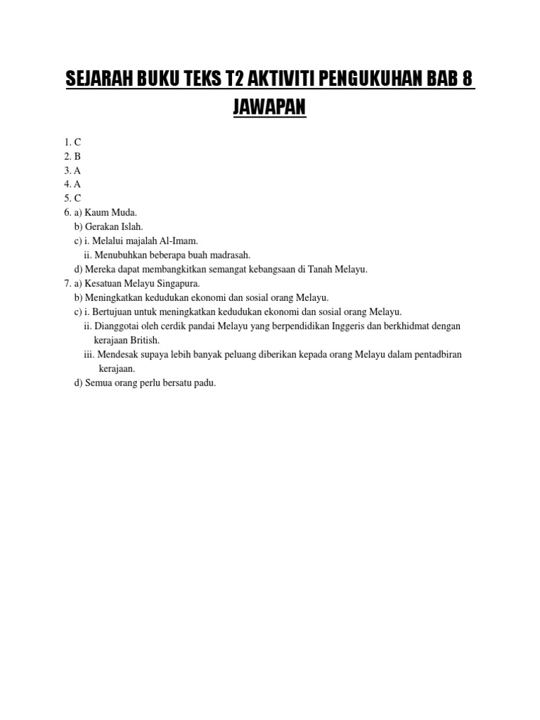 Sejarah Buku Teks T2 Aktiviti Pengukuhan Bab 8 Jawapan Pdf