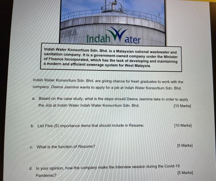 Solved Indah Ater Indah Water Konsortium Sdn Bhd Is A Chegg Com
