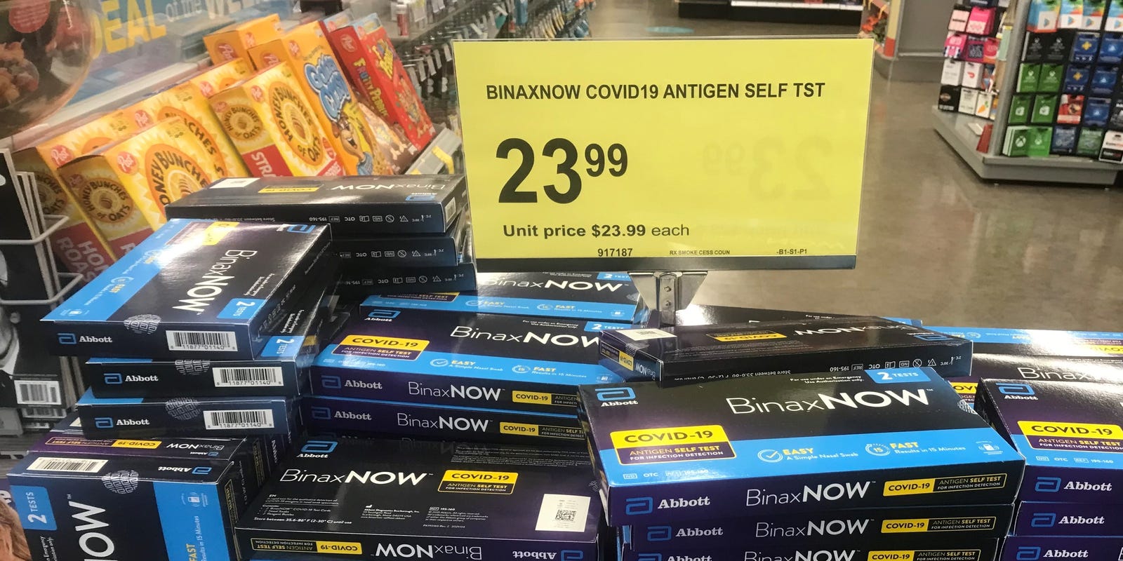 BinaxNOW COVID-19 Antigen Self-Test Kit 24 at Walgreens Ellume COVID-19 Home Test 35 at CVS Quidel QuickVue At-Home COVID-19 Test 25 at Walmart Self-collection PCR tests. It was located near the entrance. Rapid Diagnostic Test ID NOW.