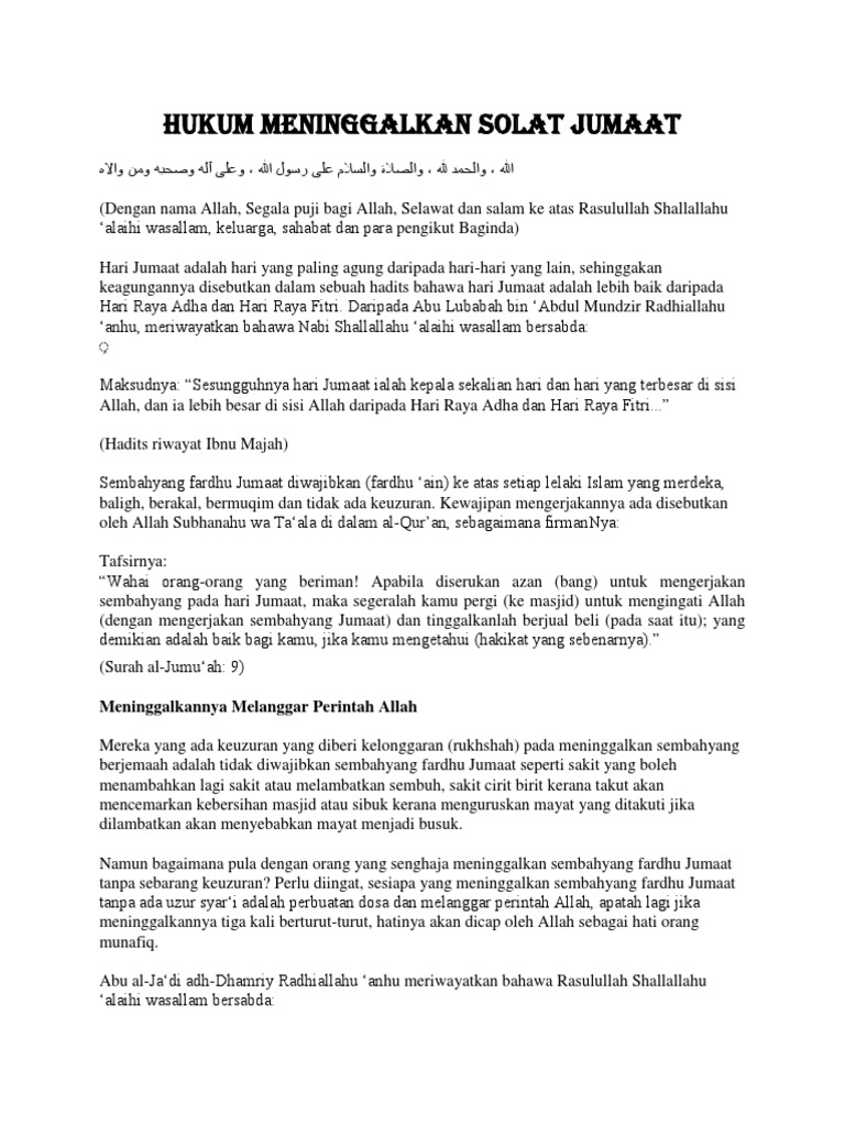Hukum Meninggalkan Solat Jumaat Pdf